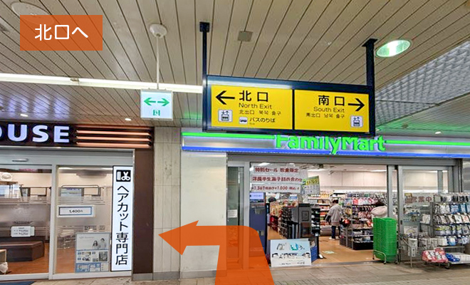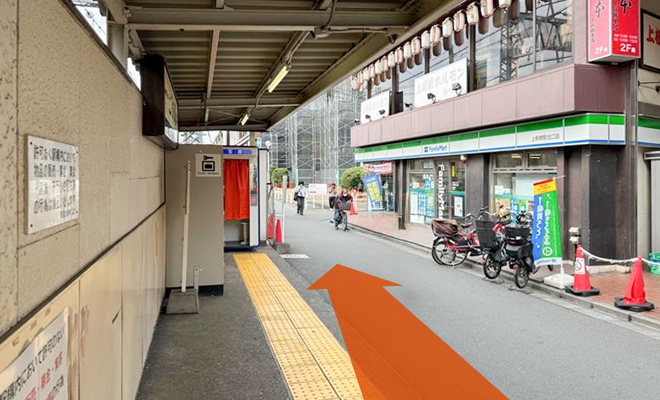 階段を下りたら、そのままファミリーマート方向へ進みます。 -