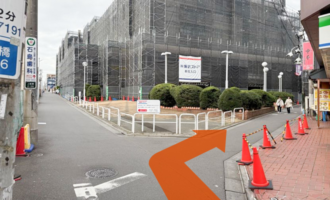 右側のファミリーマート上板橋駅北口店の先を右折します。 -