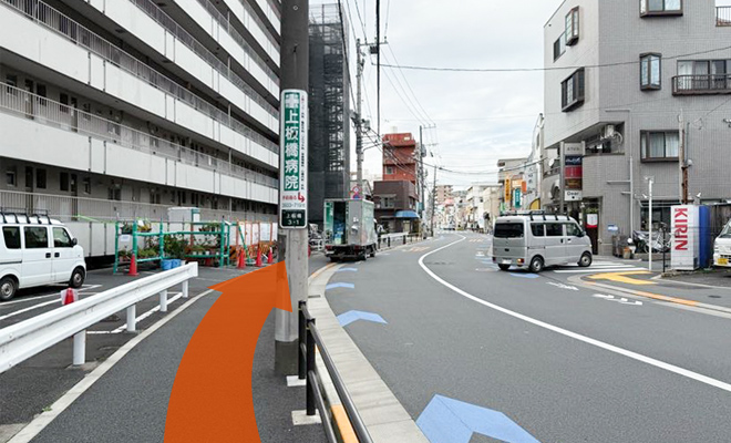上板橋三丁目の交差点で、二つ目の横断歩道を渡ります。 -